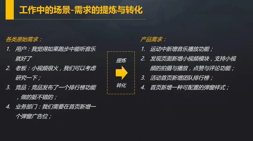 产品迭代的核心是挖掘和转化用户需求,即分析用户痛点的使用场景,收集并整理各方的需求来源,提炼用户需求,转化为功能点的迭代。