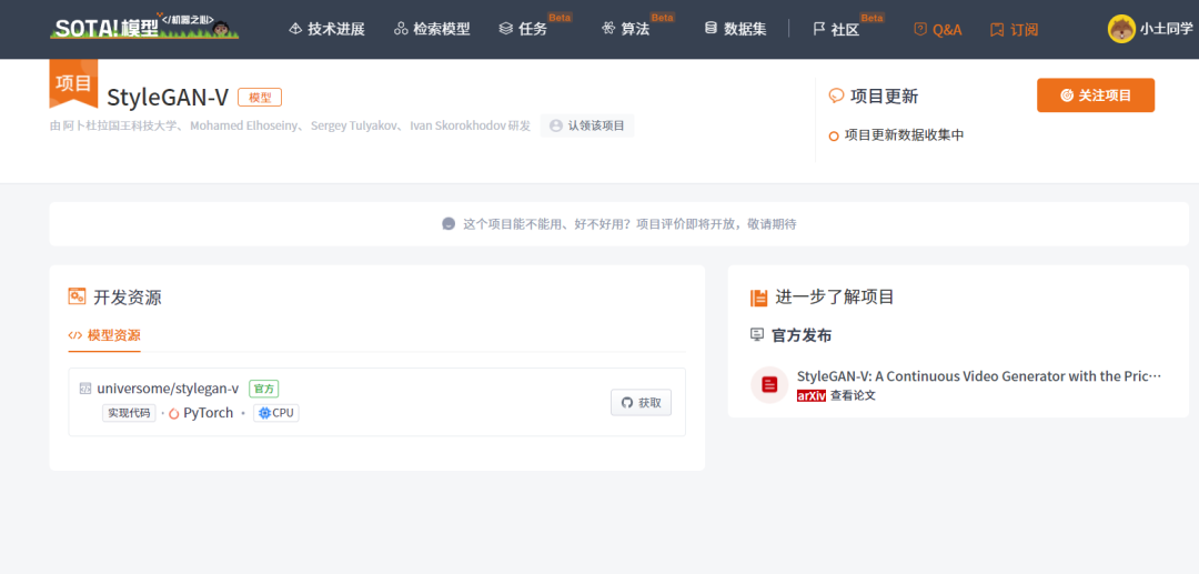 当前 SOTA!平台收录 StyleGAN-v 共1个模型实现资源。