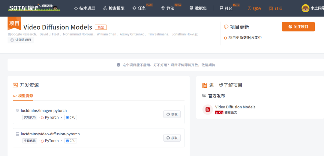 当前 SOTA!平台收录 Video Diffusion Models 共2个模型实现资源。
