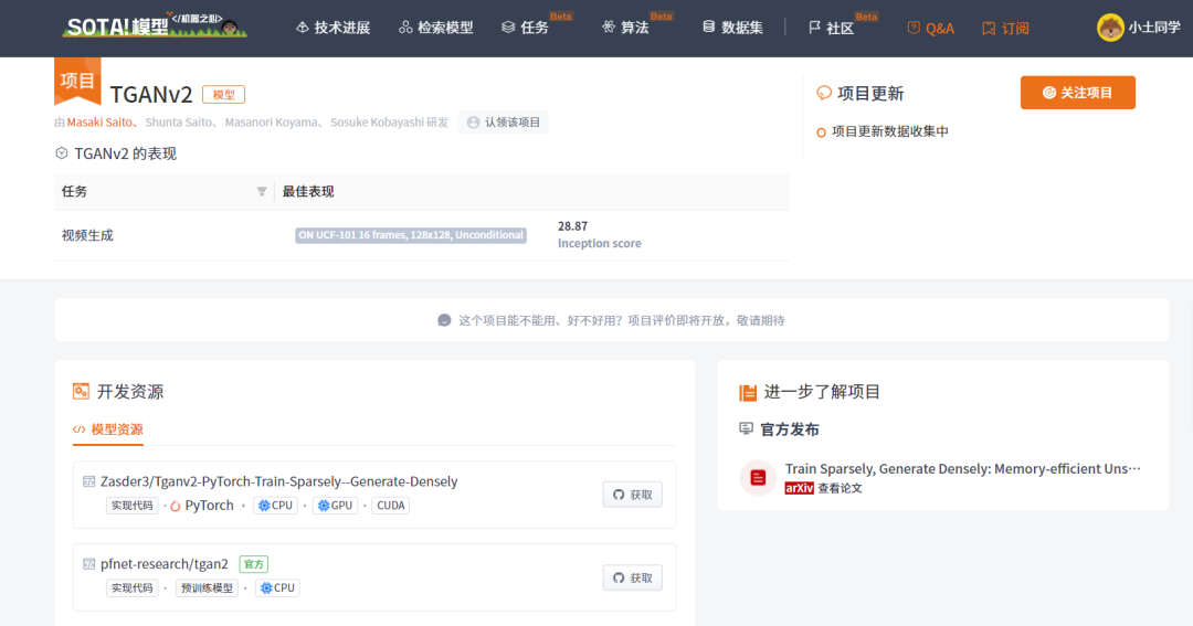 当前 SOTA!平台收录TGANv2共 2个模型实现资源。