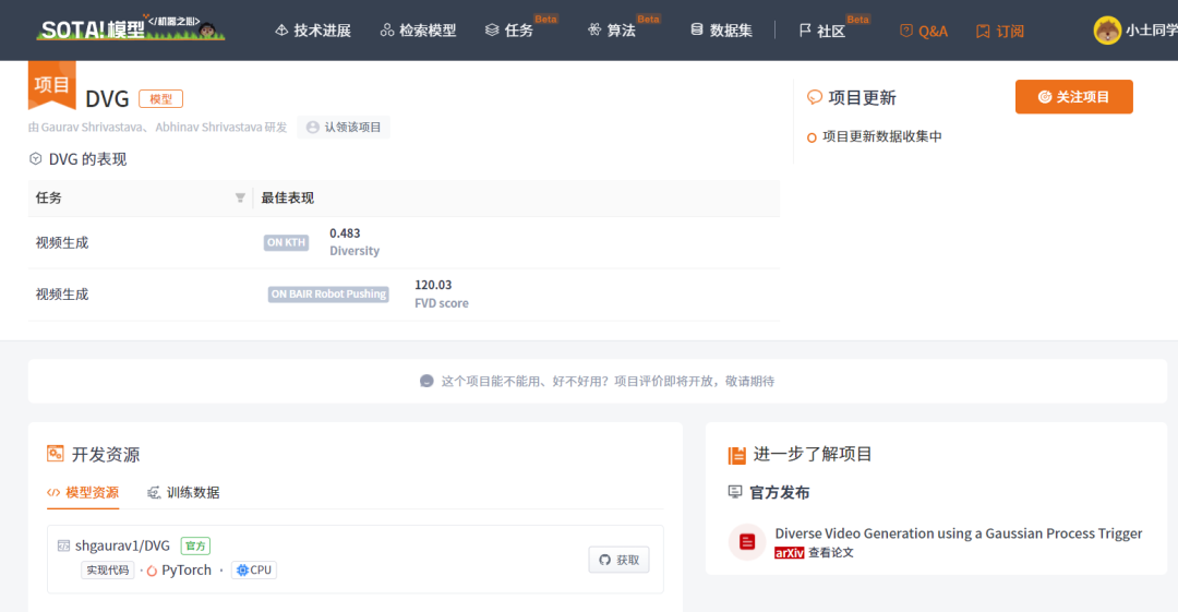 当前 SOTA!平台收录 DVG 共 1 个模型实现资源。