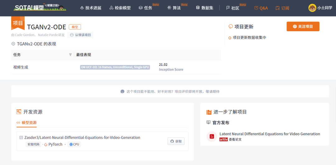 当前 SOTA!平台收录TGANv2-ODE共1个模型实现资源。