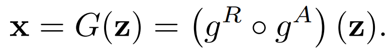 首先描述单次采样层的GAN的训练。假设一个生成器从噪声向量z输出视频x,由两个块组成:抽象块g^A和渲染块g^R。在推理过程中,该生成器的样本生成过程等同于传统GAN中的生成器,即,G(z)可以表示为