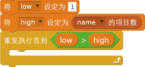 2. 建立变量 key,设为要搜索的数据。建立变量 low,设为 1;建立变量 high,设为列表 name 的项目数。