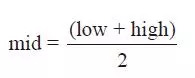 2. 将变量 mid 设为(low+high)/2(=3)。