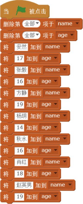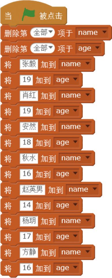 1. 建立列表 name 和 age,删除其全部项,并将 7 名学生的姓名(按部首笔画递增排序)和相应年龄分别添加到列表 name 和 age。