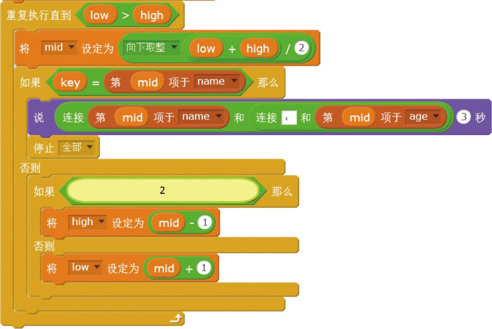 7. 如果直到low>high时依然没有找到 key,则说出“没有”。程序创建完成。