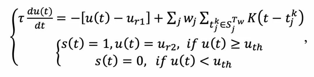 用于刻画时间衰减效应(距离当前时刻越近的脉冲输入对膜电位影响越大)。