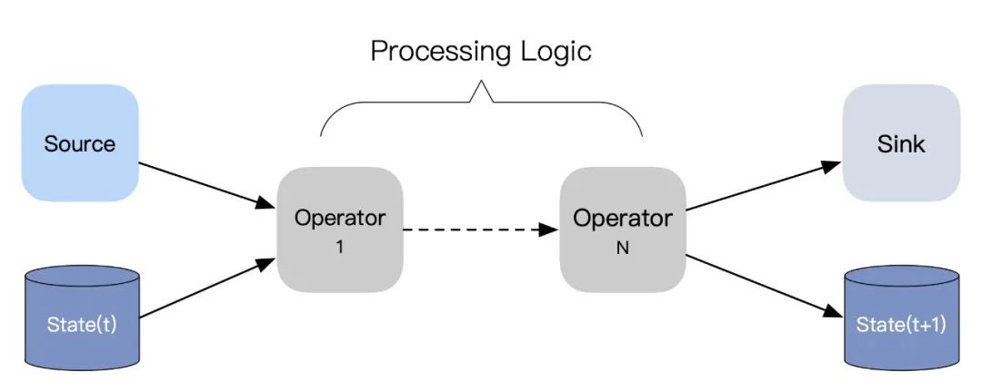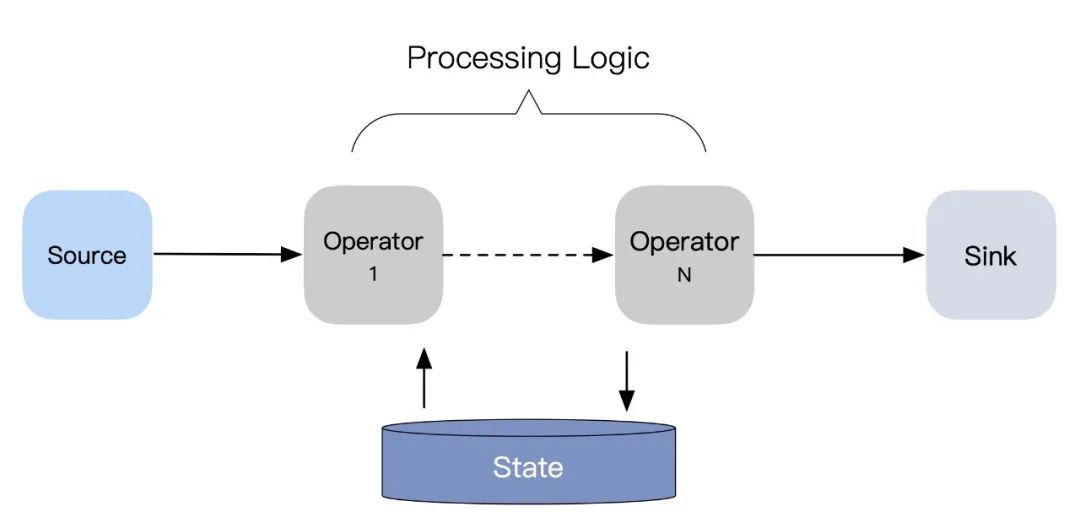 流 -> 流:没有聚合操作的数据处理过程; -