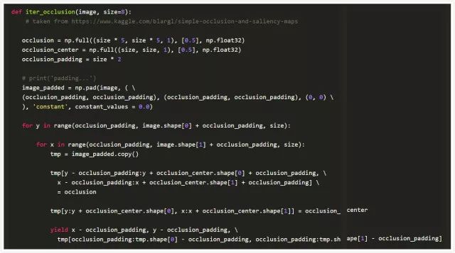 在图像分类问题中,可能会遇到目标物体被遮挡,有时候只有物体的一小部分可见的情况。基于图像遮挡的方法是通过一个灰色正方形系统地输入图像的不同部分并监视分类器的输出。这些例子清楚地表明模型在场景中定位对象时,若对象被遮挡,其分类正确的概率显著降低。