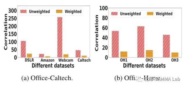 图2 是加权数据和不加权数据相关性对比,可以看出我们的模型可以有效去除特征相关性。图3是参数实验,证明了参数的鲁棒性。