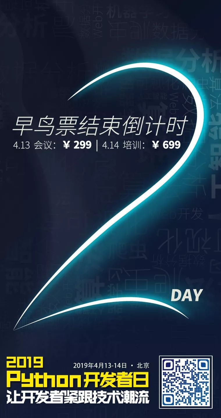 4月13-14日,CSDN将在北京主办“Python开发者日(2019)”,汇聚十余位来自阿里巴巴、IBM、英伟达等国内外一线科技公司的Python技术专家,还有数百位来自各行业领域的Python开发者,共同探讨Python在不同场景下的的应用优势和实战经验。即刻扫码抢购早鸟票,限量发售!