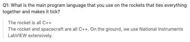 终于找到 2013 年 SpaceX 的软件工程师在 Reddit 做过一次公开回应,回答网友们的提问。