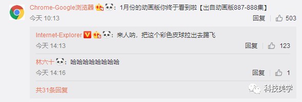 今天IE官博遭到了友商Chrome的调侃哈哈哈哈