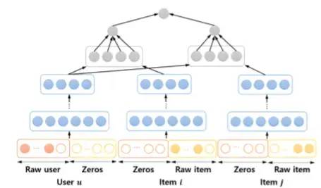 特别是,它选择原始用户/物品向量作为输入,学习潜在用户/物品表示。