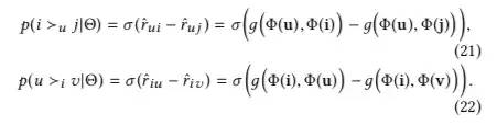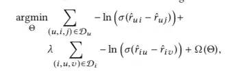 其中为sigmoid函数,上式即为常见的MF-BPR模型