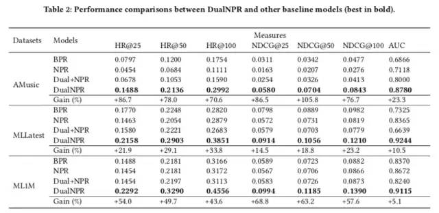 DualNPR利用用户和物品的成对排名发现用户和物品之间的真实相关性,缓解了数据稀疏问题。