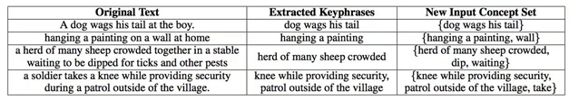 在第二种方法中,他们从模型输出中提取非重叠的关键短语,然后构建一个新的概念集,其中包含这些关键短语和原始概念集中的其他非重叠概念。