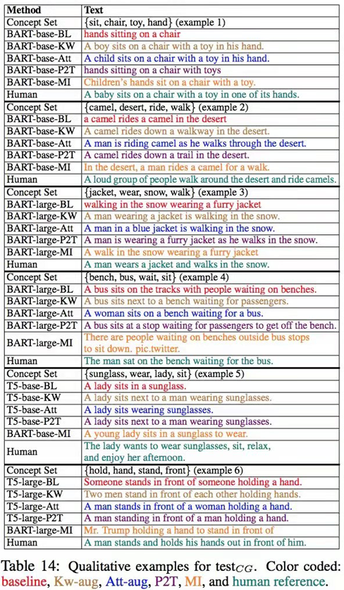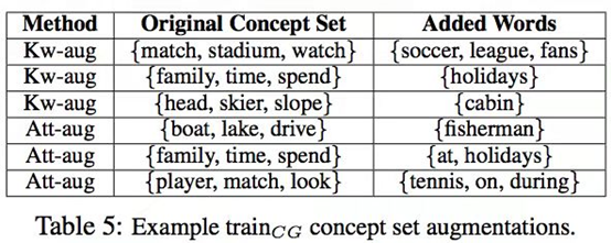 他们的第一个方法:Kw-aug和Att-aug,分别在训练现成的关键字提取模型注意值时,从参考文献中提取关键字,使用它们在训练时扩展输入概念集。(通过动作联想场景,通过名词联想动作,也就是由名词扩增动词,由动词扩增状语等)