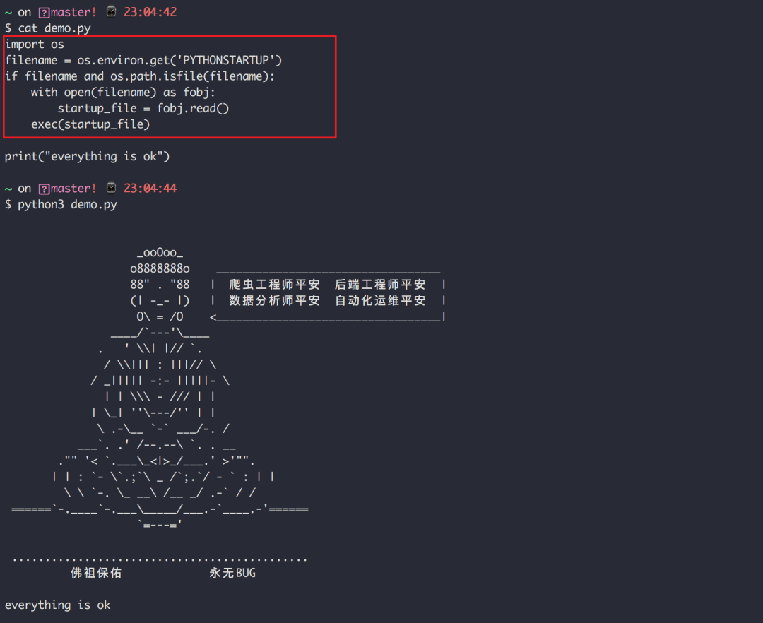 $ export PYTHONSTARTUP=/Users/MING/startup.py