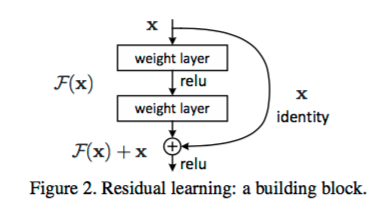 按我们目前所看到的,增加深度应该能够提升网络的准确率,同时也会导致过拟合。但增加深度的问题在于,在网络末端通过预测值和真值比较得到的权重修改信号,到了之前的层会变得很微弱。这基本上意味着网络之前的层几乎没有进行学习。这被称为梯度消失现象。而另一个问题在于,需要在巨大的参数空间中执行优化,随意增加层数会导致更大的训练误差。残差网络通过使用残差模型模块构建网络,从而训练此类深层网络(如下图所示)。这称为退化(degradation)问题。对于其工作原理可做如下解释: