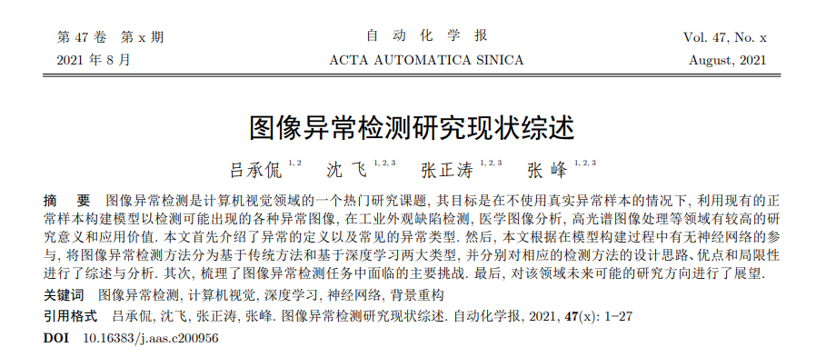 中科院自动化所等《图像异常检测研究现状》综述论文