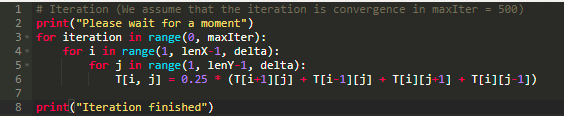 然后我们使用 Python 来实现方程,并在 for 循环中对其进行迭代。