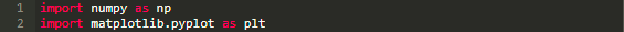 下面让我们正式开始写代码。为了使用 Numpy,我们需要将其载入,同样的过程适用于 Matplotlib。 我们使用 pyplot 模块来画最后的结果。所以,第一步是载入必要的模块。