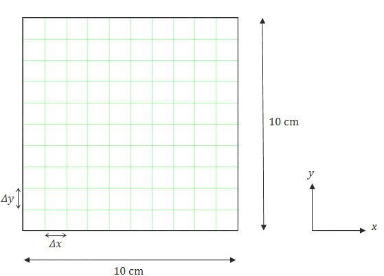 我们设置 Δx = Δy = 1 cm,得到如下的方格图。