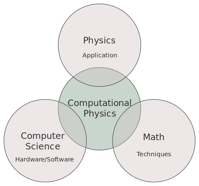 在计算物理中,我们经常编程来解决问题,因为计算机程序可以进行大型且复杂的计算。计算物理领域就像下图所展示的一样: