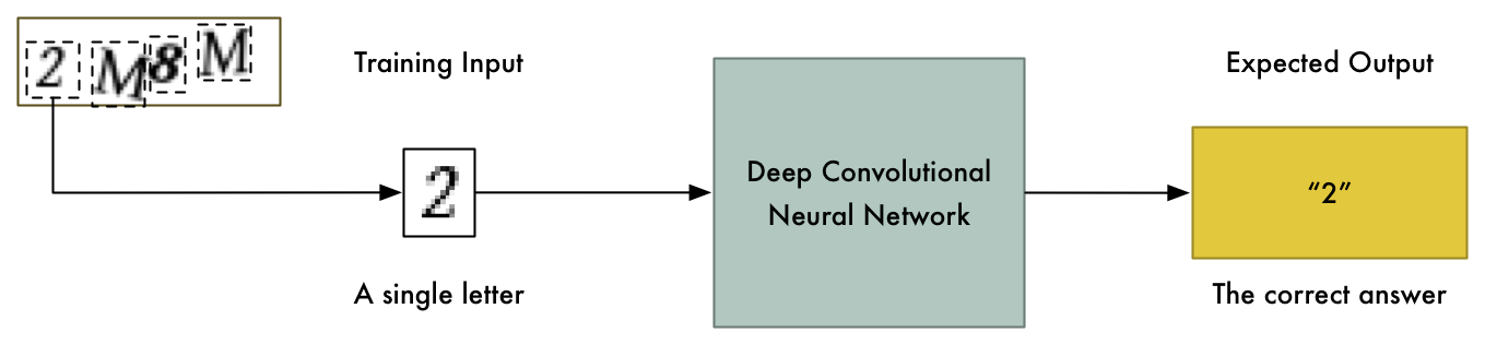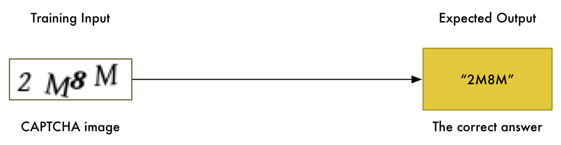 为了训练机器学习系统,我们首先需要训练数据。而为了破解CAPTCHA系统,我们需要的训练数据应该长这样:
