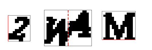 我们将会对半分开任何宽度远大于高度的区域,并将其按两个独立的字母来处理。这个技巧听起来有点不靠谱,但是应用在这些CAPTHCA验证码图片上的效果却很不错。