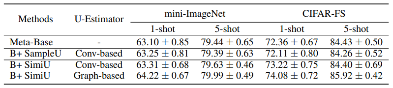 不同建模方式的对照实验:在该实验中,研究员们将对相似度及样本的特征表达进行不确定性建模和实验对比。同时,研究员们还对比了不确定性预测器不同的结构设计,实验结果如表2所示。其中,“SampleU”表示对样本表征进行不确定性建模;“SimiU”表示对“样本-类中心”对相似度进行不确定性建模。“Conv-based”表示基于卷积模型的不确定性预测器;“Graph-based”表示基于图模型的不确定性预测器。实验结果表明,本文提出的相似度不确定性建模方法和基于图模型的不确定性预测器具有较好的实验性能。