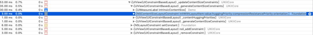 update constant: 更新约束的耗时,即更新 NSLayoutConstraint 的 constant 常量。
