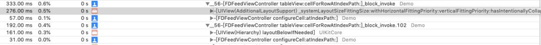 systemLayoutSizeFittingSize 总耗时 276 ms, layoutIfNeeded 总耗时 161 ms 多了 70% 的耗时
