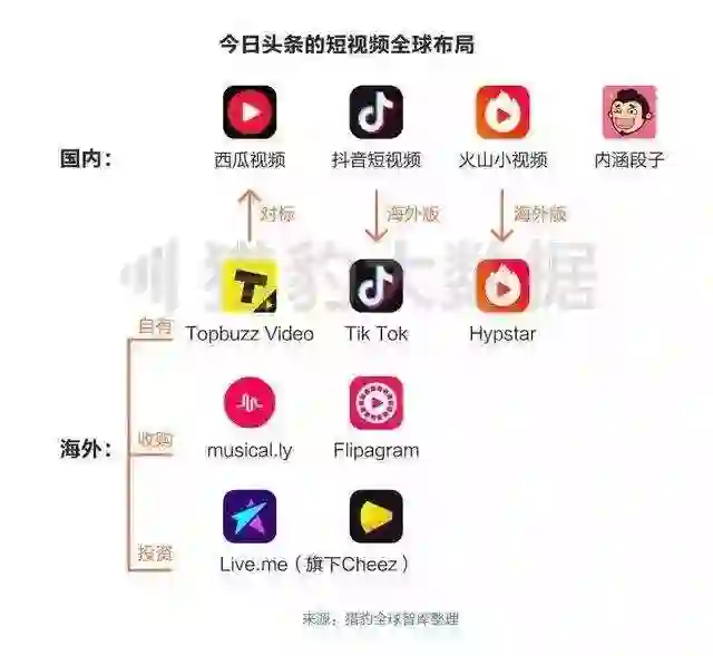 早期中国互联网靠Copy to China起家,而今日头条在国外没有对标物。所以BAT多半是防御型的出海,而今日头条则充满了攻击性:自建产品上,TopBuzz多次取得北美App Store新闻榜第一;投资层面,通过推出抖音和收购Flipagram,今日头条实现了对Musical.ly的围剿,从而拿下后者。