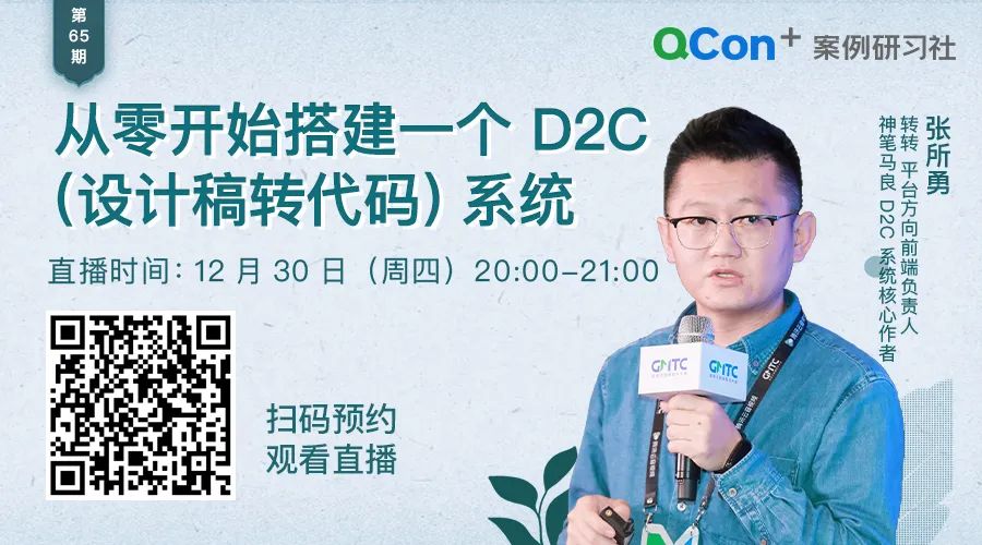 今晚 8 点,转转平台方向前端负责人神笔马良 D2C 系统核心作者张所勇将直播分享「从零开始搭建一个 D2C(设计稿转代码)系统」,揭秘 D2C 系统原理。