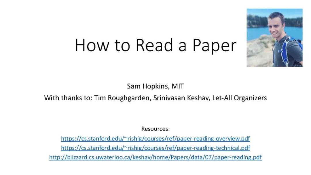 MIT Sam Hopkins助理教授为您讲解提供有效阅读论文的工具。