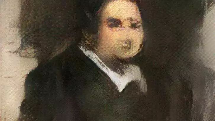 尽管如此,这种开放的分享对我们看待艺术的方式提出了挑战。佳士得在2018年11月以近50万美元的价格拍卖了《贝拉米家族的埃德蒙德·贝拉米》(Edmond de Belamy, from La Famille de Belamy),这是一副AI绘制画作,由巴黎艺术团体Obvious利用算法、基于14世纪至20世纪的15000幅经典肖像作品完成。这场拍卖本身已经给出了警示。
