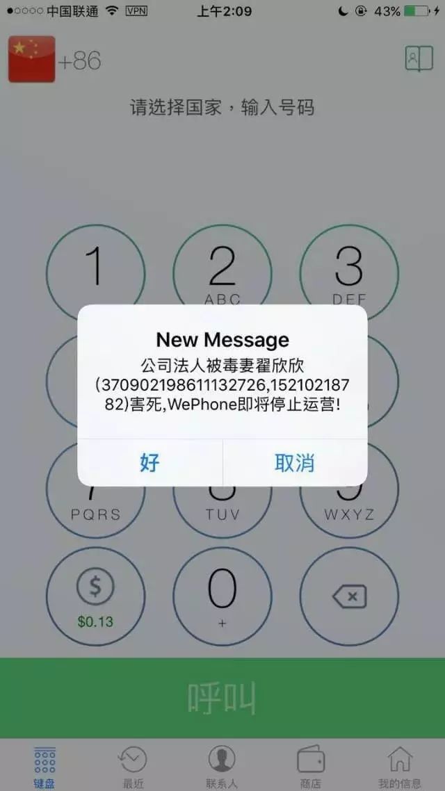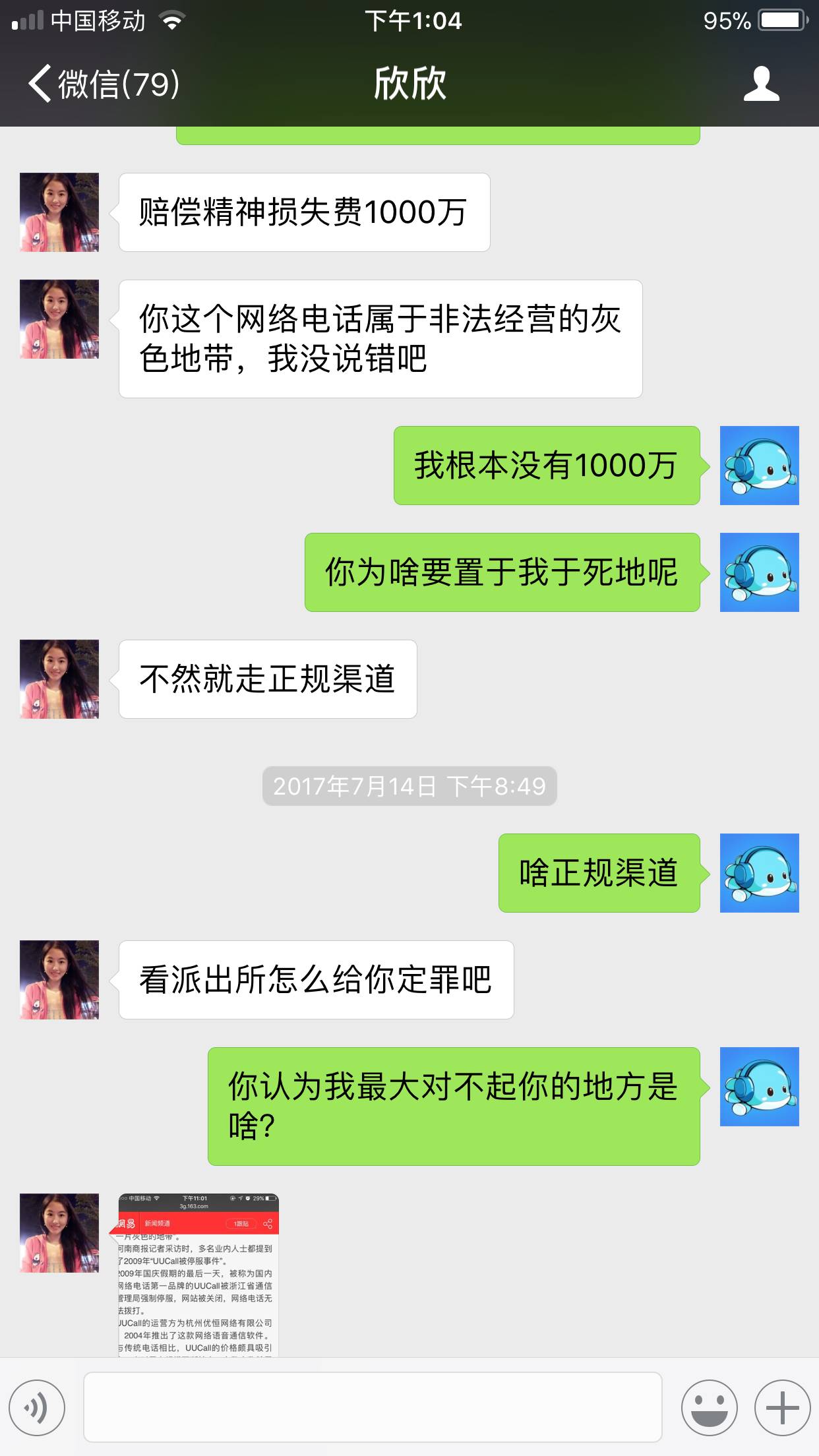 2. WePhone有网络电话功能是灰色运营 ,各种暗示能利用她亲戚舅舅刘克俭(据她说是不小的公安局的官)的关系让我产品下架罚款、倾家荡产