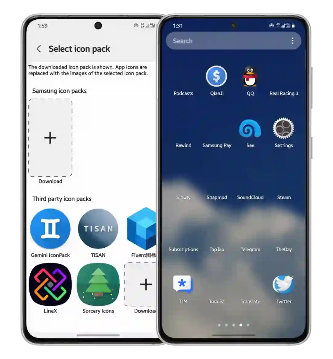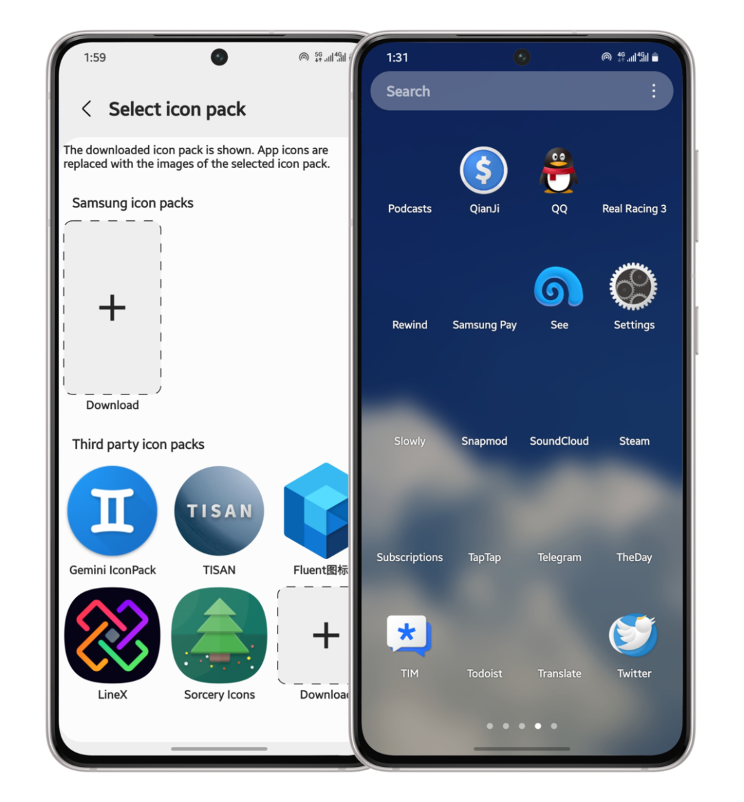 自从三星的 GoodLock 插件占据了各类「One UI 使用手册」的大块版面之后,One UI 出众的自定义能力就变成了三星口碑的中流砥柱。然而直至 One UI 3.1,想要在三星的默认桌面上更换图标都是一件相当繁琐的操作,有时甚至还需要通过 root 去解决。现在这个问题也在 One UI 4 中得到了完善,通过 GoodLock 中的主题公园插件,我们终于可以直接更换系统启动器的图标配置了。