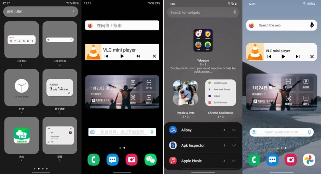 作为 Android 12 的主要更新点之一,已经陆续有许多 app 适配了全新设计,提供造型更加活泼的小组件,包括许多三星系统软件,更多对于卡片式背景的使用也让来自不同 app 之间的小组件拥有了统一的视觉语言。