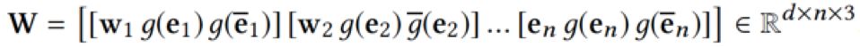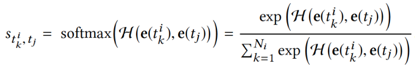 在得到新闻标题三方面信息的向量表示之后,下一步是要将它们放到同一个模型中进行训练。但是这里存在的问题是,三者不是通过同一个模型学出来的,直接放到同一个向量空间不合理。这篇文章使用的方法是,先把链接实体、上下文实体的向量表示通过一个非线性变换映射到同一个向量空间: