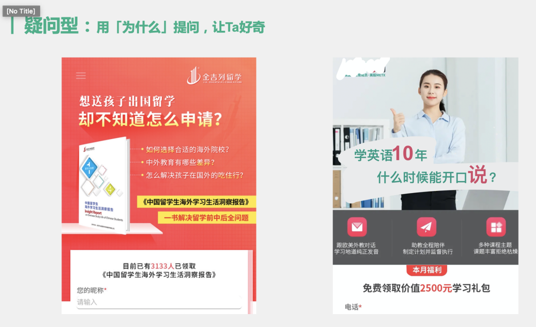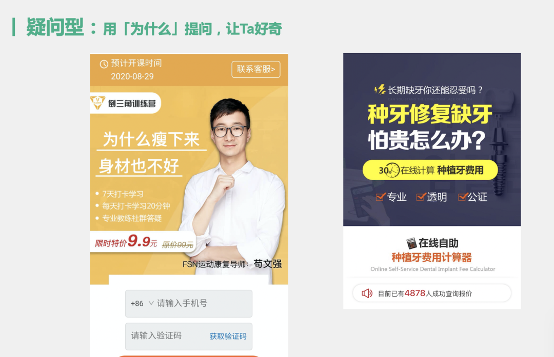 就是让用户产生“为什么”的灵魂拷问,吸引消费者有兴趣继续了解产品。这个方式比较好理解,这里不做过多展开了,给大家看几个具体的例子。