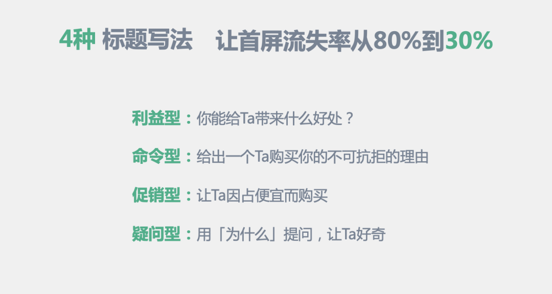 关键点其实很简单,就是“你的首屏标题表达了什么?”——因为这决定了,页面出现的一瞬,用户是否能看到、和广告创意相呼应的信息。