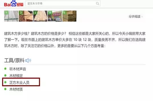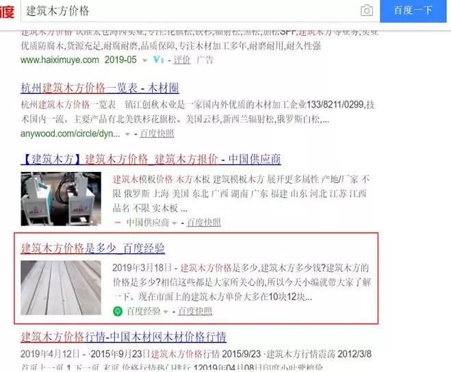 关键词为建筑木方,我这边需要组合长尾关键词为,建筑木方多少钱?建筑木方价格?建筑木方如何进行挑选?这种关键词核心词的热门关键词,这些关键词可以包含在标题以及正文里面。看下图:搜索关键词为建筑木方价格?建筑木方多少钱?