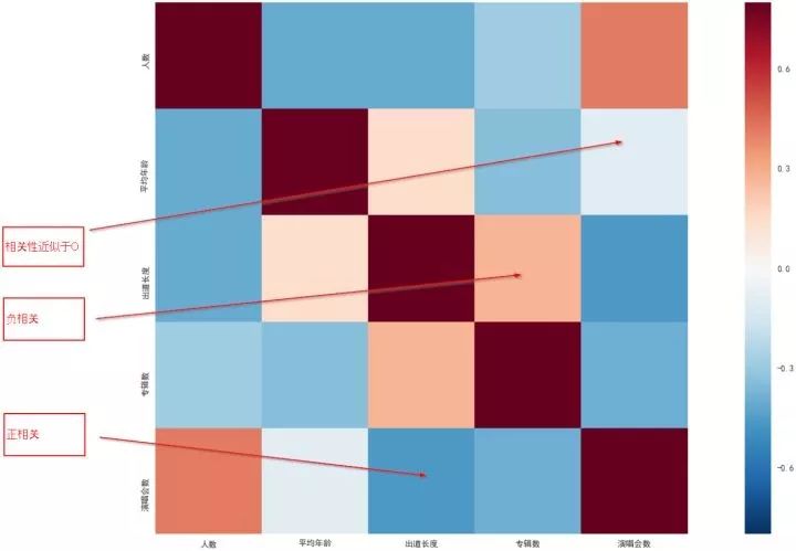 举例,如果我们发现出道年限和专辑数呈负相关,这就违反了常识。按照常识出道时间越长专辑数应该越多,因此需要认真检查为什么会有这样的情况发生,是否是潜在问题。