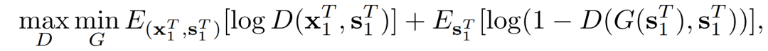 其中D是鉴别器。在求解上式时,最小化p((x_1)˜^T|(s_1)^T)和p((x_1)^T|(s_1)^T)之间的Jensen-Shannon分歧是一项具有挑战性的任务。vid2vid提出了新的网络设计和用于视频到视频合成的时空目标。