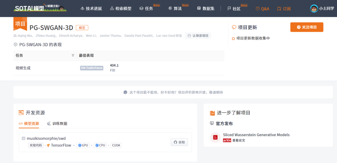 前往SOTA!模型平台获取实现资源:https://sota.jiqizhixin.com/project/pg-swgan-3d |