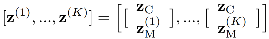 在MoCoGAN中,假设有一个图像的潜空间ZI≡Rd,其中,每个点z∈ZI代表一个图像,一个K帧的视频由潜在空间中长度为K的路径表示。通过采用这种表述,不同长度的视频可以由不同长度的路径生成。此外,以不同速度执行的同一动作的视频可以通过在潜在空间中以不同速度穿越同一路径来生成。进一步,假设ZI被分解为内容ZC和运动ZM子空间。ZI = ZC × ZM,其中,ZC = RdC ,ZM = RdM,d = dC + dM。内容子空间为视频中与运动无关的外观建模,而运动子空间为视频中与运动有关的外观建模。例如,在一个人微笑的视频中,内容代表这个人的身份,而运动代表这个人的面部肌肉的变化。一个人的身份和面部肌肉构造的配对代表了这个人的面部图像。这些配对的序列代表了这个人微笑的视频片段。通过将这个人的表情与另一个人的表情互换,就可以代表一个不同人的微笑视频。使用高斯分布对内容子空间进行建模:zC ∼ pZC ≡ N (z|0, IdC) ,其中,IdC是一个大小为dC × dC的身份矩阵。基于在一个短的视频片段中内容基本保持不变的观察,使用相同的实现,zC,来生成一个视频片段中的不同帧。视频片段中的运动是由运动子空间ZM中的路径来模拟的。用于生成视频的矢量序列由以下方式表示: